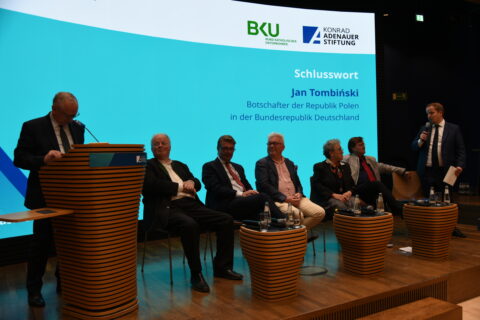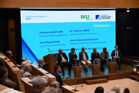 Diese und weitere Fragen standen im Mittelpunkt des 1. Deutsch-Polnischen Wirtschaftsgipfels Berlin, den der BKU Berlin-Brandenburg gemeinsam mit der Konrad-Adenauer-Stiftung (KAS) am 12. Juni 2025 in der Akademie der KAS ausrichtete. Mehr als 100 Gäste aus Wirtschaft, Politik und Gesellschaft – sowohl aus Deutschland als auch aus Polen – nahmen an der hochkarätig besetzten Veranstaltung teil.