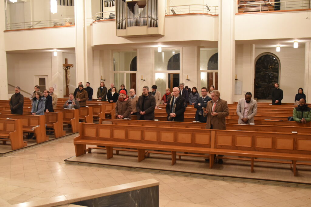 Der Abend startete mit einer Heiligen Messe in St. Kamillus in Berlin-Charlottenburg. Pfarrer Dr. Wieneke predigte über den Advent als Zeit der Verheißung des Messias und der Hoffnung auf die Erfüllung seiner Prophezeiung. Sie markiert die Schwelle zwischen dem Alten und dem Neuen Testament.