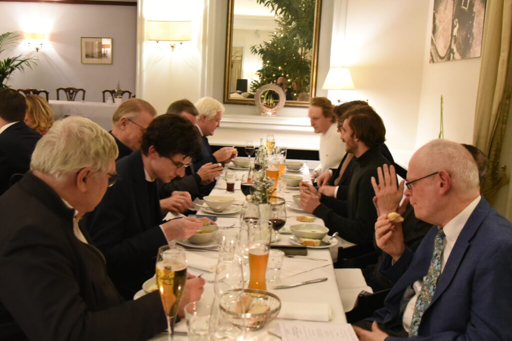 Nach der Begrüßung unseres alten und neuen Vorsitzenden Richard Schütze gab es als Vorspeise entweder Maronensuppe oder Feldsalat. Dann kam der Auftritt unseres Ehrengastes an diesem Abend:
