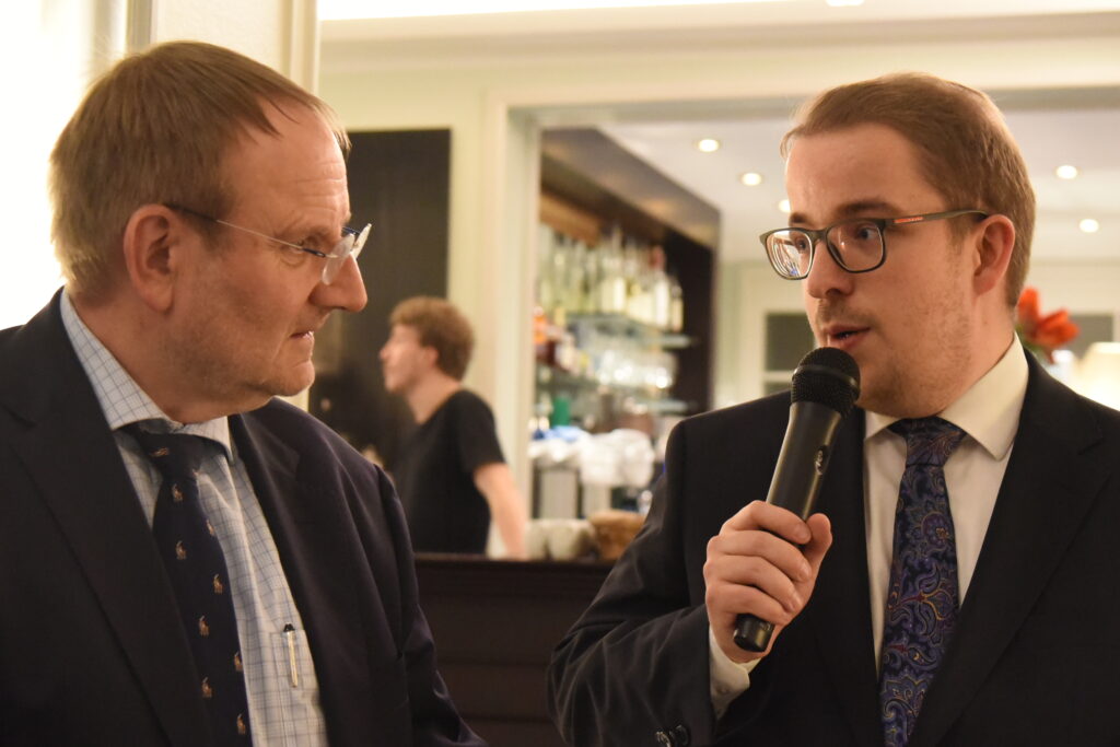 Der Journalist Ralf Schuler (ehem. Axel Springer Verlag, nun bei NIUS engagiert) hielt einen Impulsvortrag mit dem Thema „Das Volk, das im Finstern wandelt, sieht (k)ein großes Licht. Ein Parforceritt durch die Krisen unserer Zeit.“