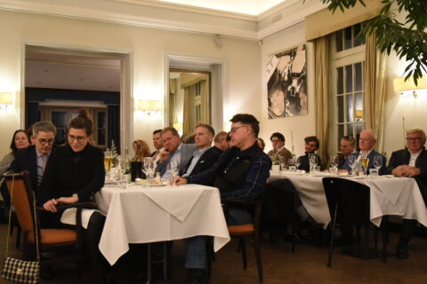 Ein Potpourri von zum Teil aufrüttelnden Tatsachen und Meinungen – imponierend und anregend vorgetragen. Alle hörten gebannt zu, auch wenn der Vortrag mit einem Ausblick auf die Zukunft kein einfaches „Happy End“ verheißen konnte – außer natürlich der Hinweis auf Menue-„Hauptgang“ mit wahlweise Entenkeule, Fisch oder das vegetarische Essen. Alles schmeckte allen ganz ausgezeichnet.