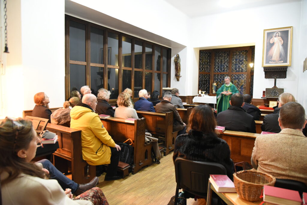 Der Abend hatte wunderbare Startbedingungen: Die Kapelle von Haus Vinzenz war bis auf den letzten Platz gefüllt. Draußen regnete es und drinnen bebte der Lobgesang der sangesfreudigen Gläubigen bei der Heiligen Messe.