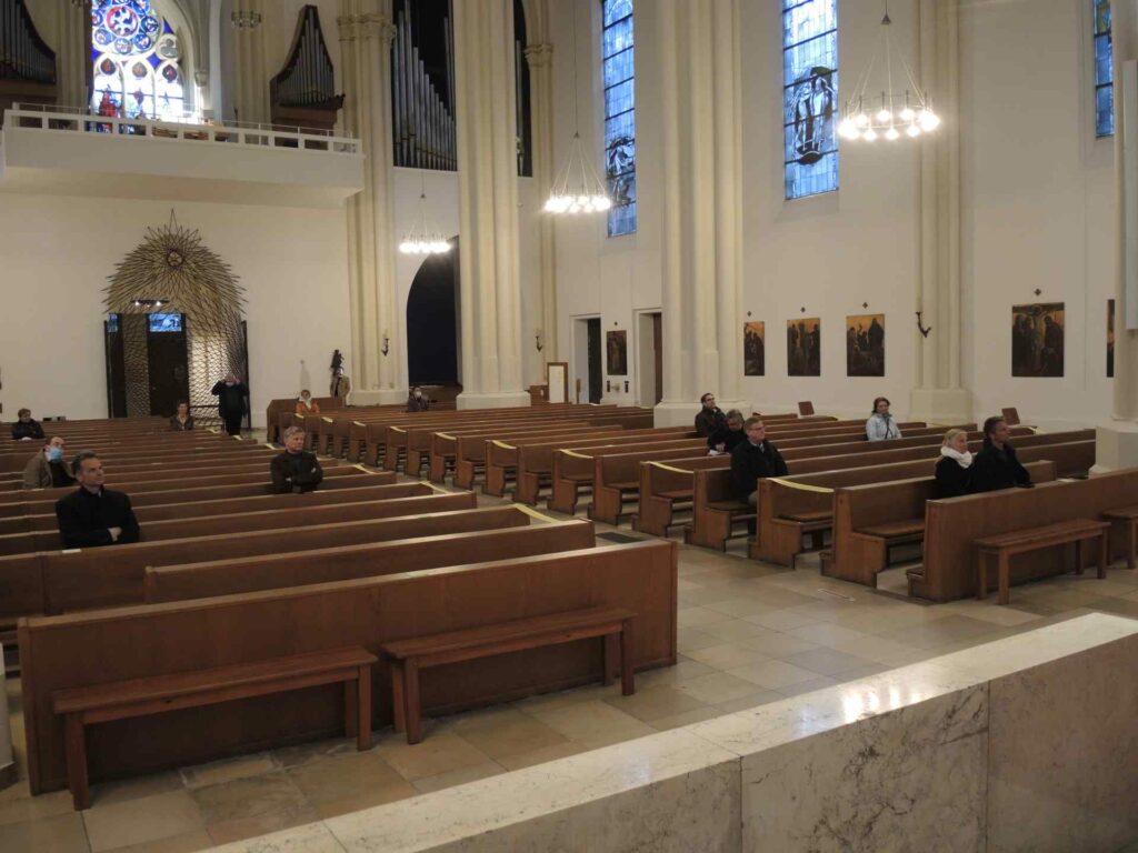 Mehr als 2 Monate, nachdem wir uns das letzte Mal gesehen haben, feierten wir am 11. Mai 2020 die erste Heilige Messe nach dem Lockdown mit Pfarrer Dr. Josef Wieneke in St. Matthias. Erste gemeinsame Schritte in eine „Neue Normalität“.