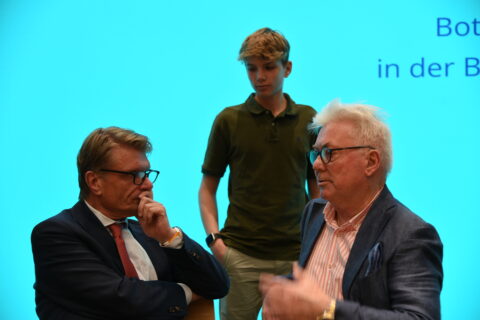 In der anschließenden Paneldiskussion, moderiert von Richard Schütze und Jakob Heinen (BKU Berlin-Brandenburg), vertieften die Redner ihre Thesen. Ergänzt wurde das Podium durch Dr. Werner Molik, Hotelier an der deutsch-polnischen Grenze auf Usedom. Das lebhafte Interesse des Publikums an einer intensiveren Zusammenarbeit der Nachbarländer zeigte sich an den zahlreichen Wortmeldungen – die Zeit reichte bei weitem nicht aus, um alle Fragen zu beantworten.
