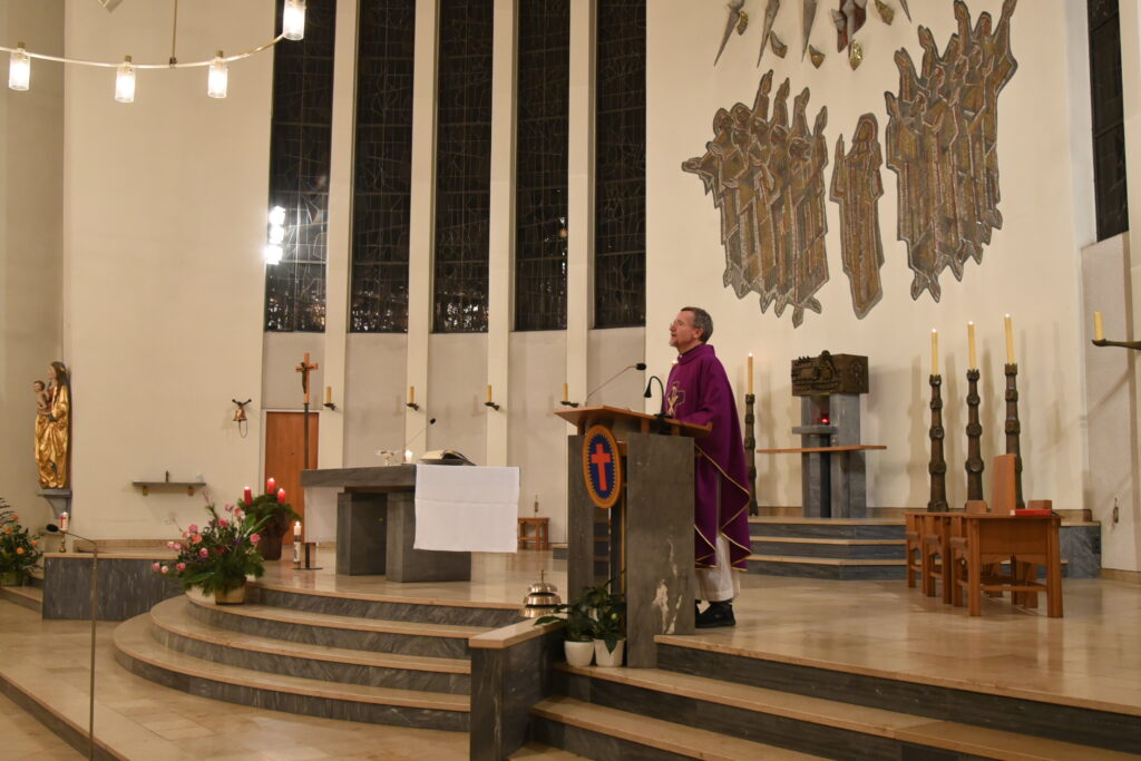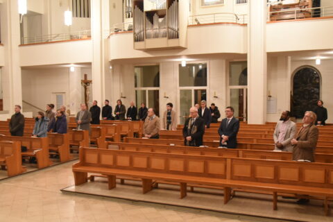 Der Abend startete mit einer Heiligen Messe in St. Kamillus in Berlin-Charlottenburg. Pfarrer Dr. Wieneke predigte über den Advent als Zeit der Verheißung des Messias und der Hoffnung auf die Erfüllung seiner Prophezeiung. Sie markiert die Schwelle zwischen dem Alten und dem Neuen Testament.