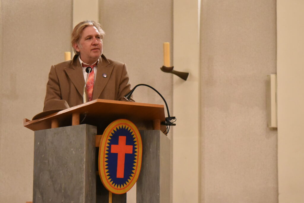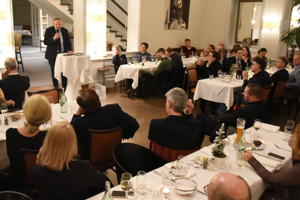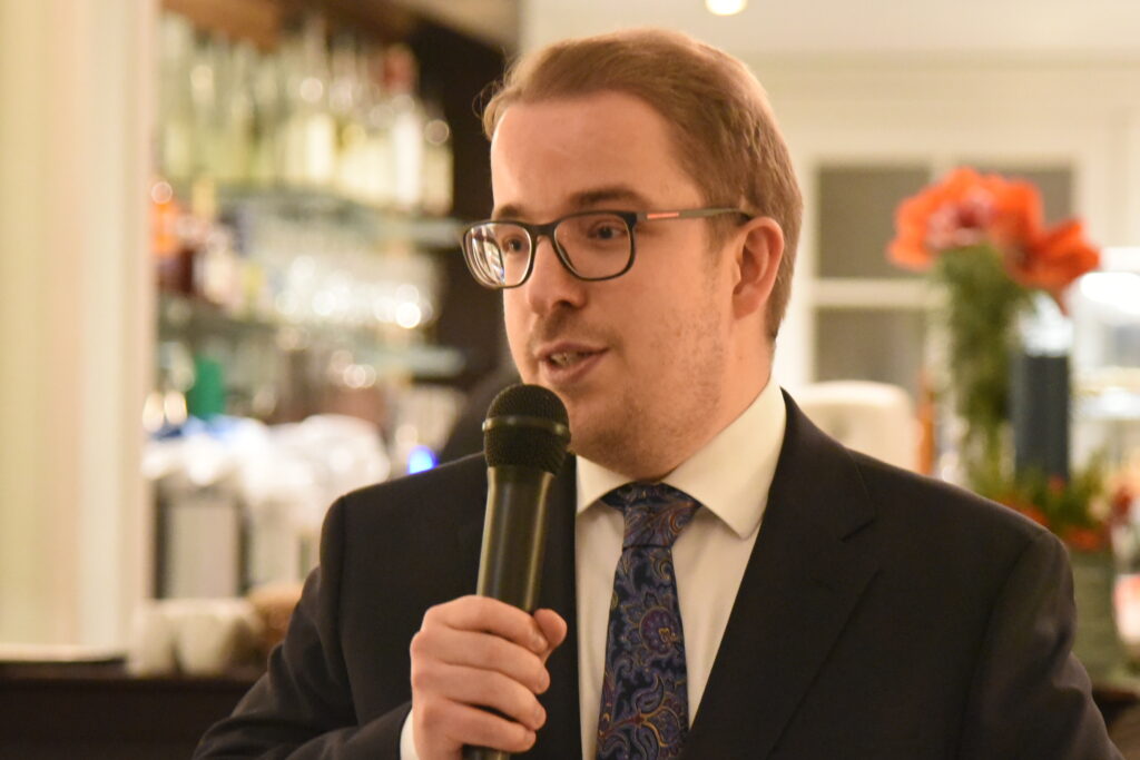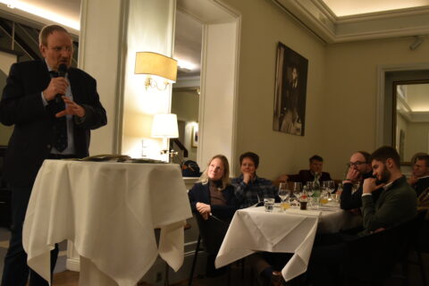 Der Journalist Ralf Schuler (ehem. Axel Springer Verlag, nun bei NIUS engagiert) hielt einen Impulsvortrag mit dem Thema „Das Volk, das im Finstern wandelt, sieht (k)ein großes Licht. Ein Parforceritt durch die Krisen unserer Zeit.“