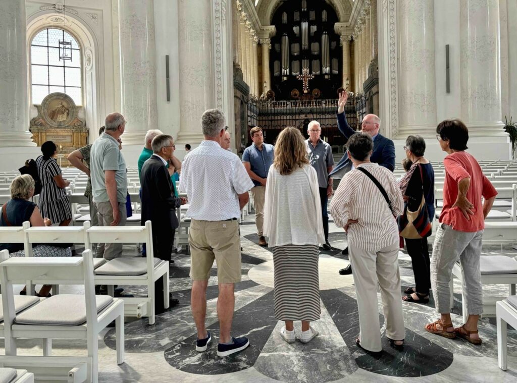 Nach der eindrucksvollen Führung von Pater Rieder durch das ferienbedingt kurzzeitig verwaiste weitläufige Kolleg, mit Abschluss im strahlend weißen Dom, sind wir geistig gesättigt und freuen uns auf ein sommerliches Mittagessen im Freien im nahen Häusern.