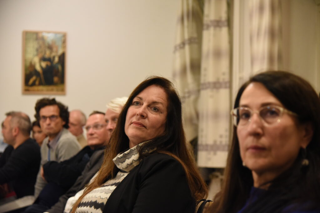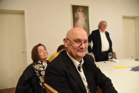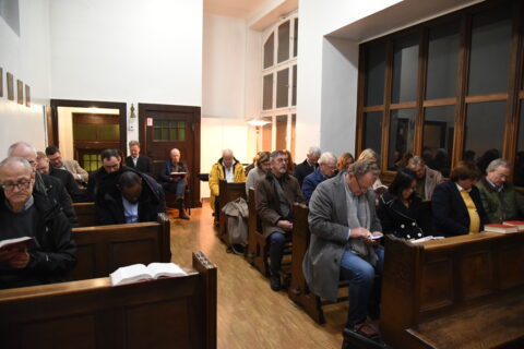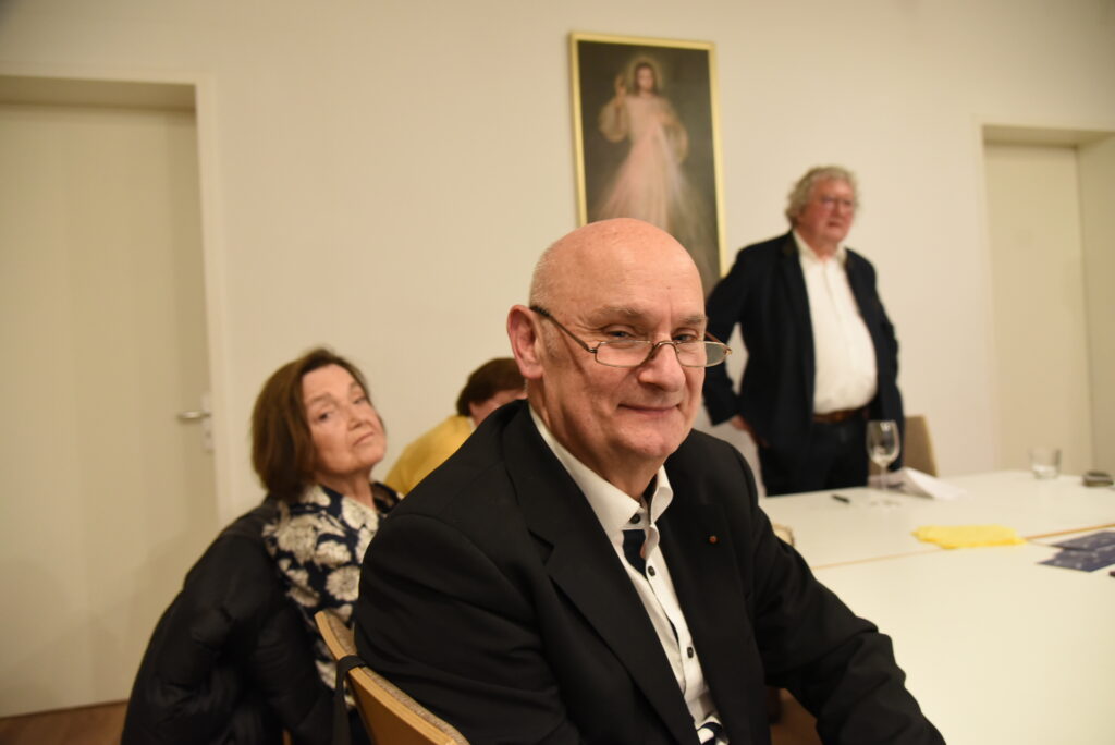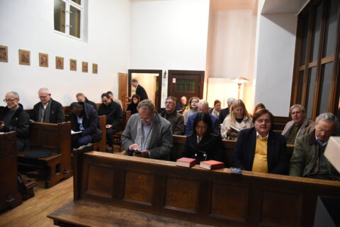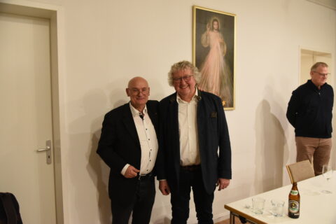 Gestärkt durch die Andacht, die Impulse der Predigt von Pfarrer Dr. Josef Wieneke und die Eucharistie betraten wir in den Vortragssaal. 25 Personen waren angemeldet – 40 kamen. Wo es eng ist, wird’s gemütlich. Alle waren schon beim Stühlerücken munter im Gespräch.