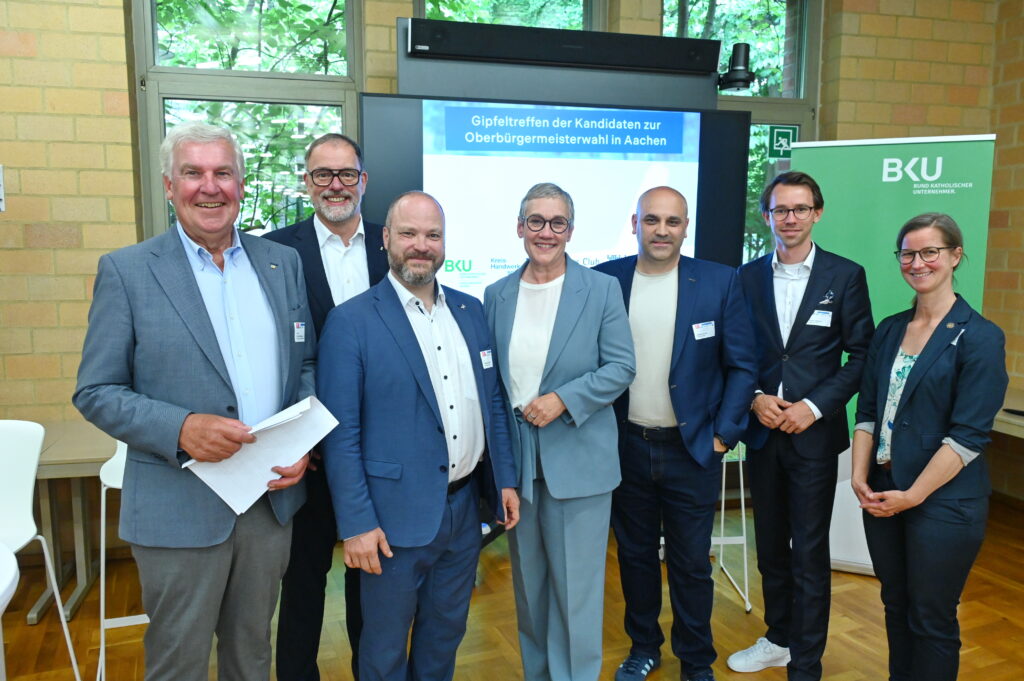 Mehr als 110 Unternehmerinnen und Unternehmer aus Aachen und der Region waren der gemeinsamen Einladung des Bundes Katholischer Unternehmer (BKU), des Business Club Aachen-Maastricht (BCAM), der Kreishandwerkerschaft Aachen und des katholischen Hilfswerks missio gefolgt. Veranstaltungsort war das Verwaltungsgebäude von missio – Internationales Katholisches Missionswerk e. V. in Aachen – ein Ort, der wie gemacht war für einen Abend des Dialogs zwischen Politik und Wirtschaft.